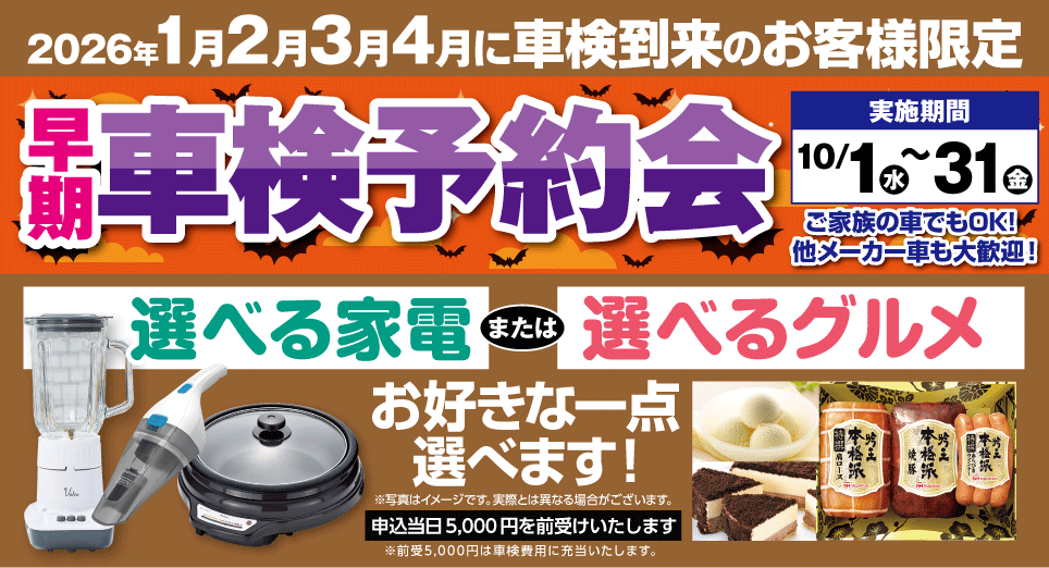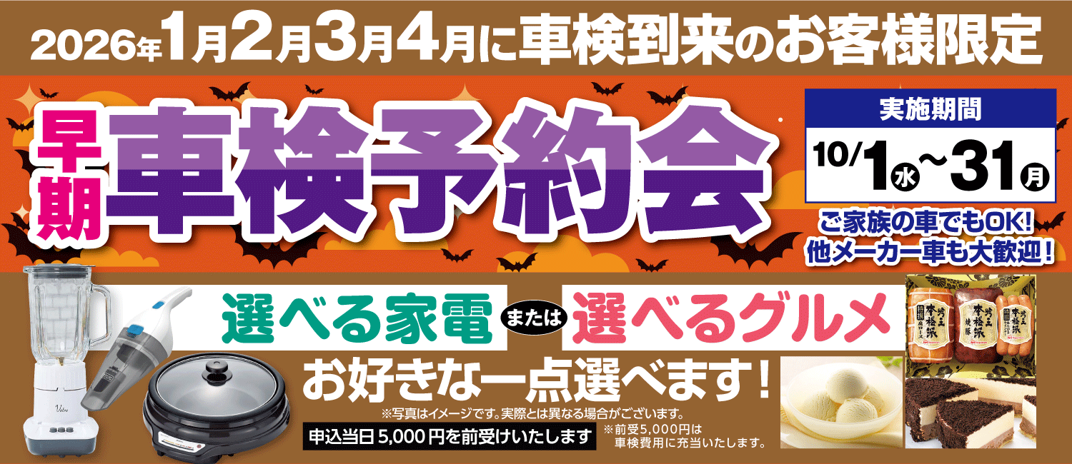 • 早期車検予約会10/1(水)~31(金)2026年1月・2月・3月・4月 車検到来のお客様限定